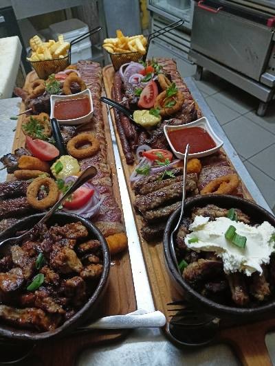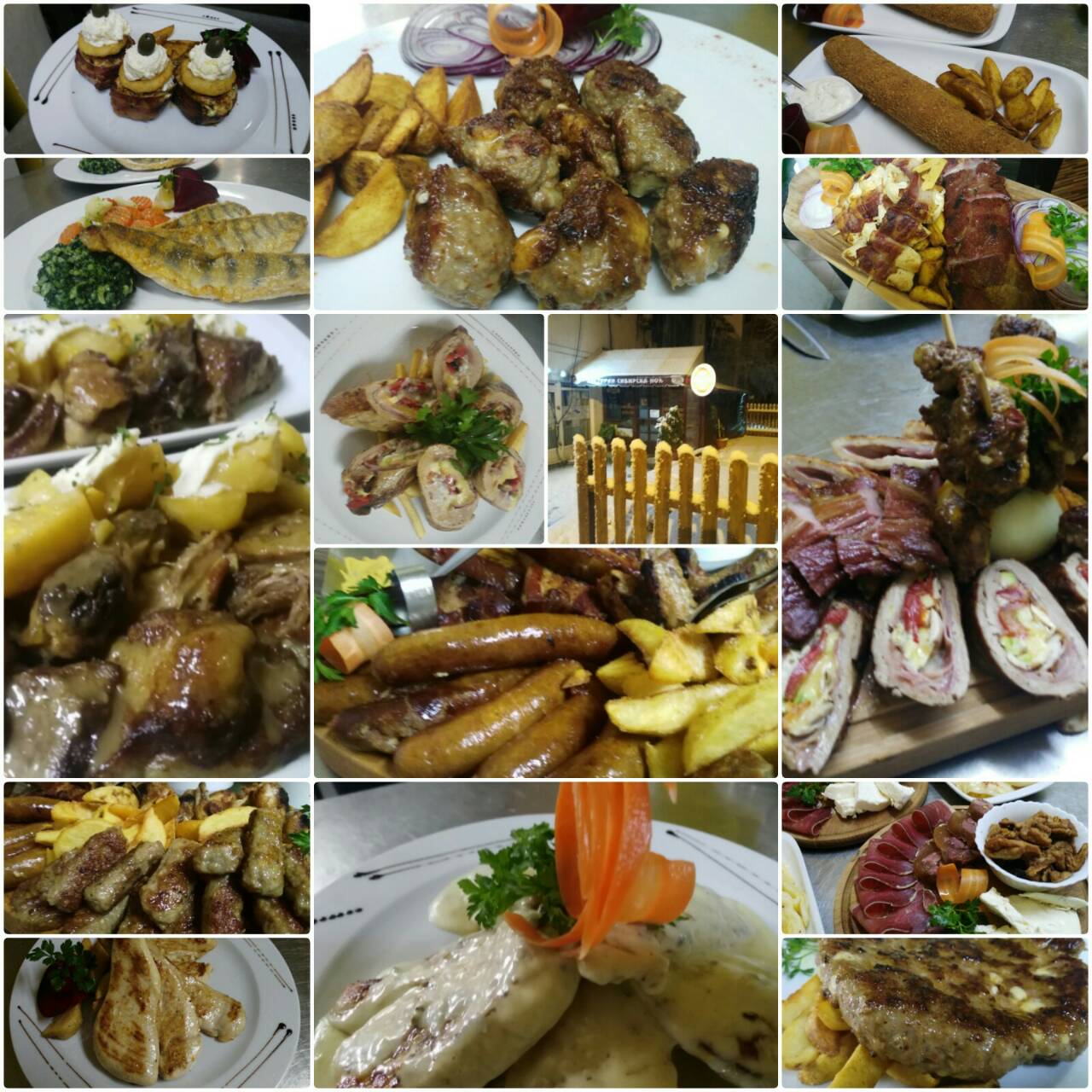 punjena vesalica u slanini,punjeni svinjski file, les.ustipci rebarca na kajmaku, domaci krompirici) +1litar domaceg vina